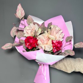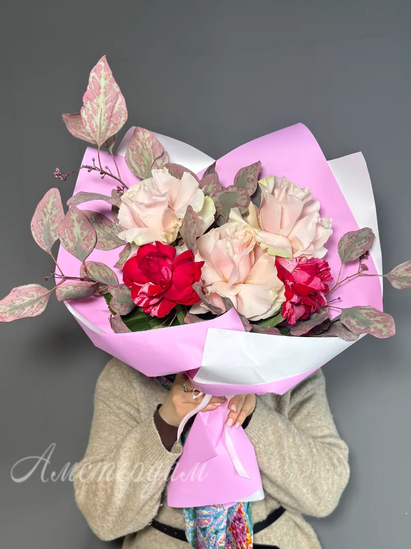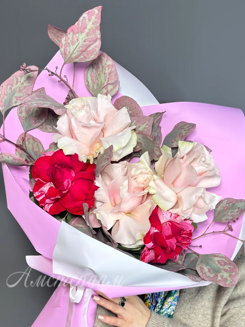 Создайте особое настроение с изысканным букетом из пяти французских роз, дополненного нежными листьями эвкалипта. Мягкая лента и красивый упаковочный материал подчеркнут элегантность каждого цветка. Французские розы известны своей стойкостью и насыщенностью оттенков, что сделает подарок запоминающимся. Этот букет идеально подойдет для особых случаев и милых жестов. Выразите свои чувства красиво и со вкусом с помощью нашего изящного букета.