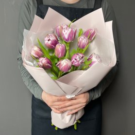 Букет из сиреневых пионовидных тюльпанов — это изысканное сочетание нежности и элегантности. Каждый цветок тщательно подобран, чтобы создать гармоничный и красивый композицией. Букет упакован в стильную дизайнерскую упаковку и украшен атласной лентой, что делает его идеально подходящим для особых случаев. Благодаря качественным тюльпанам и красивой упаковке, этот букет подарит радость и приятные впечатления. Он станет прекрасным подарком для близких и любимых людей.