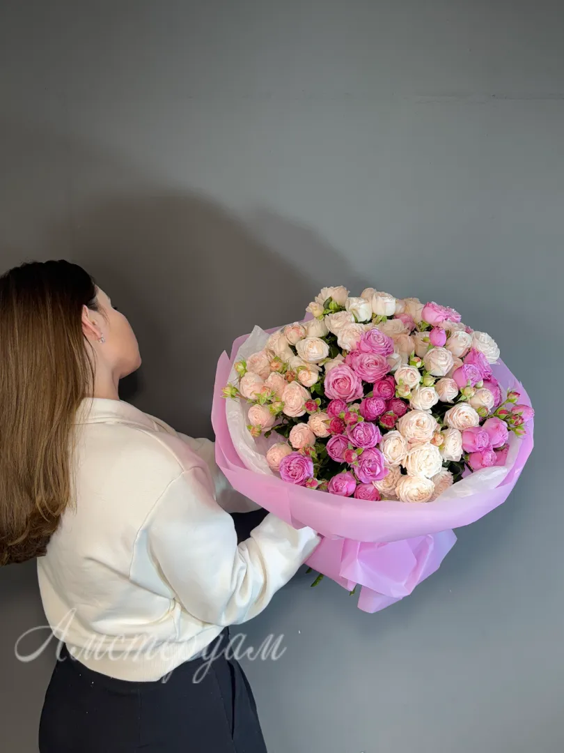 Этот элегантный букет из 15 кустовых пионовидных роз станет изысканным акцентом любого праздника. Яркие и пышные цветы создадут атмосферу уюта и романтики в вашем доме или офисе. Упаковка добавляет завершенность и делает подарок еще более привлекательным. Каждая роза тщательно отобрана для обеспечения свежести и насыщенного цвета. Благодаря своему изящному виду, букет подойдет для любого торжества или как нежный способ выразить чувства. Прекрасный выбор для романтических жестов, юбилеев или просто для украшения интерьера. Цветы отличаются долго сохраняющейся свежестью и стойкостью. Уникальный дизайн кустовых пионовидных роз подчеркнет вашу исключительность. Этот букет подарит радость и улыбки благодаря своей красоте и изяществу.