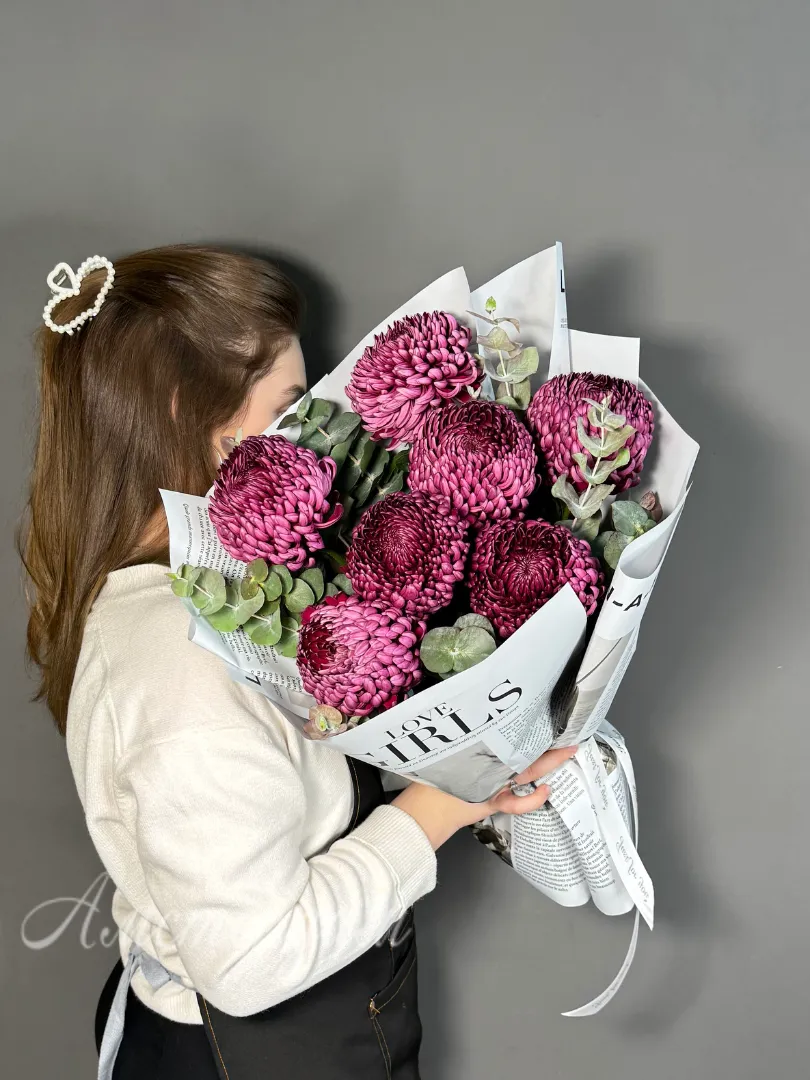Букет с хризантемами бигуди
