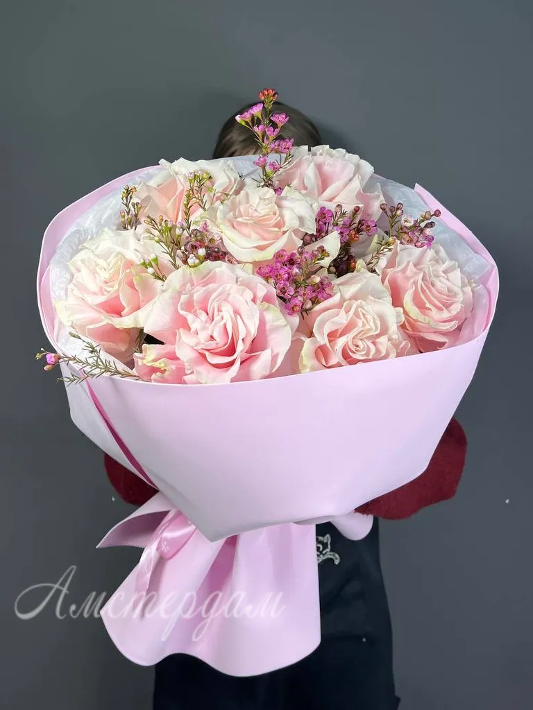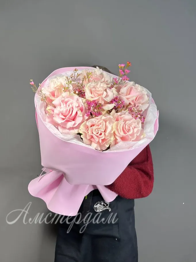 Этот изысканный букет сочетает в себе нежность французских роз и элегантность хамелациума, создавая уникальную гармонию. Каждая роза изысканно оформлена и тщательно подобрана для гармоничного визуального восприятия. Хамелациум добавляет нежный акцент и мягкий контраст, делая композицию ещё более привлекательной. Упаковка выполнена из высококачественных материалов, подчеркивая особенность подарка. Такой букет идеально подойдет для романтических жестов, поздравлений или украшения интерьера. Он подчеркнет вашу заботу и тепло, передавая искренние чувства. Благодаря своей свежести и красоте, этот букет долго будет радовать глаз и создавать настроение. Подарите близким ощущение нежности и красоты с нашим изысканным букетом из французских роз и хамелациума.