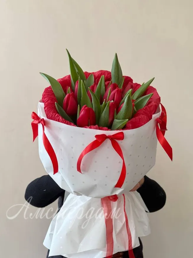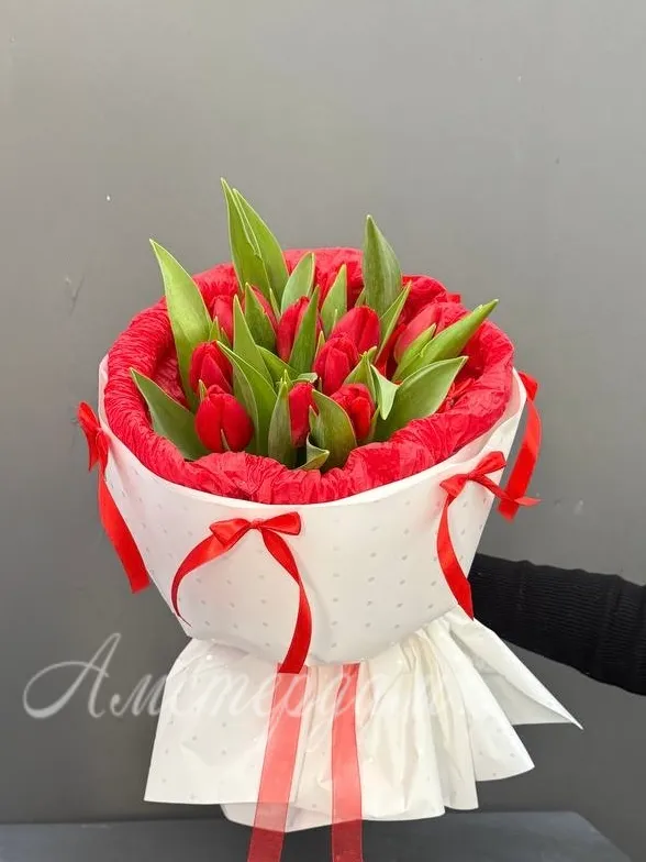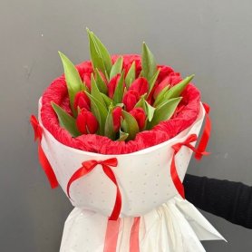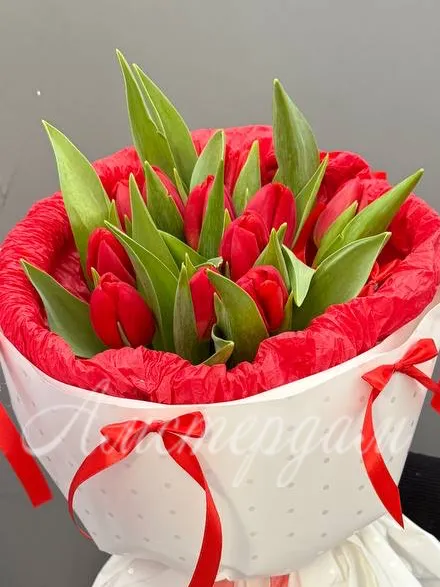 Подарите яркое настроение с нашим букетом из ярко красных тюльпанов. Этот изысканный букет станет идеальным украшением любого праздника и выразит ваши искренние чувства. Каждая тюльпан — символ страсти и искренности, создавая атмосферу тепла и уюта. Упаковка выполнена стильно и элегантно, подчеркивая красоту цветов. Букет отлично подойдет для подарка близким, коллеге или любимому человеку. Натуральные цветы обеспечивают свежесть и длительное наслаждение красотой. Сделайте особенный подарок, который обязательно запомнится и порадует получателя.