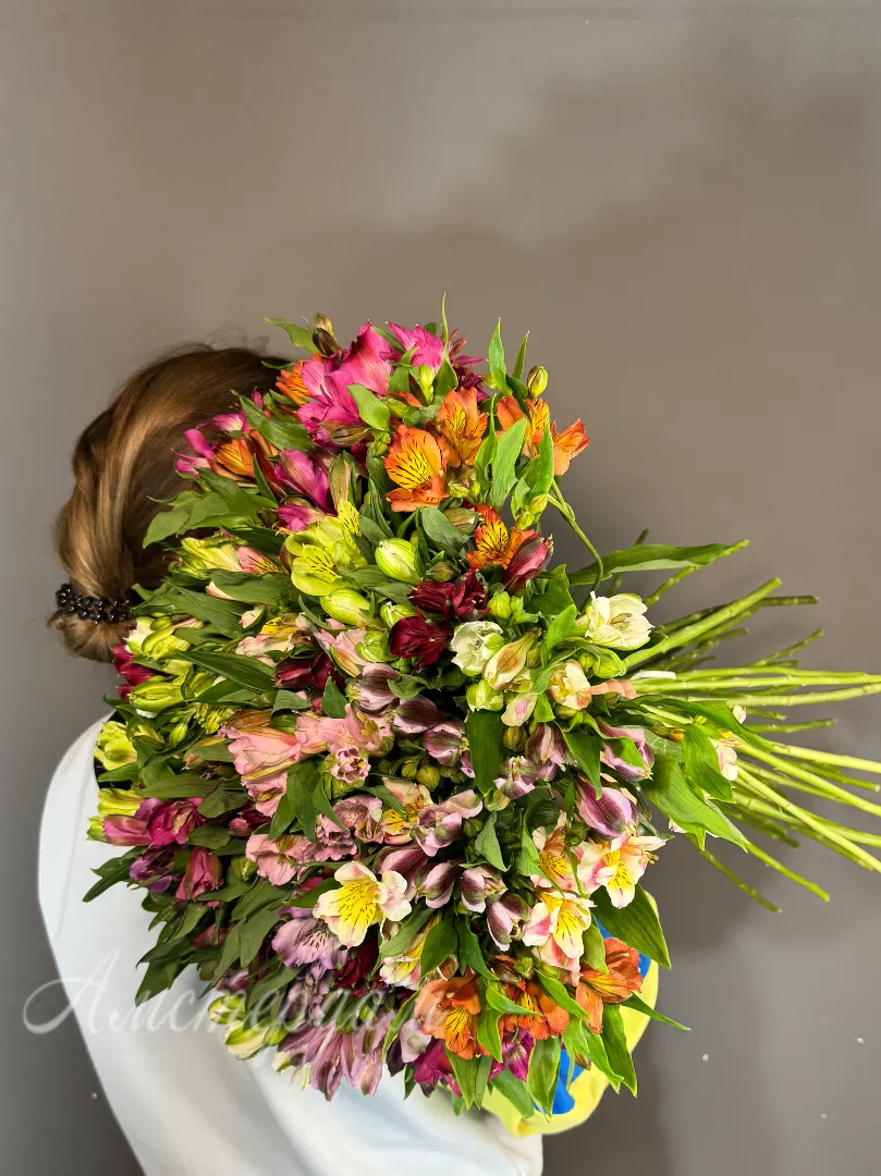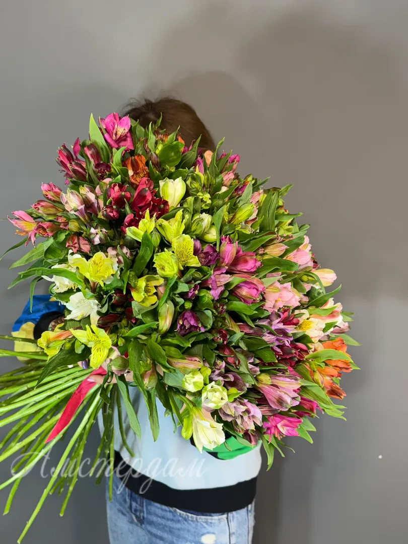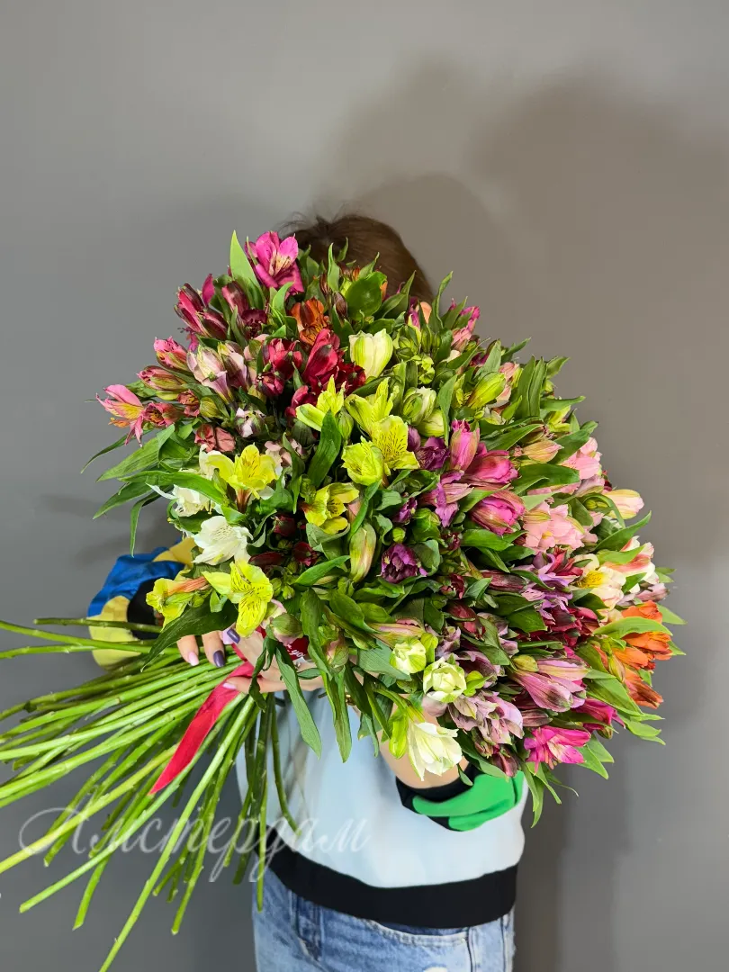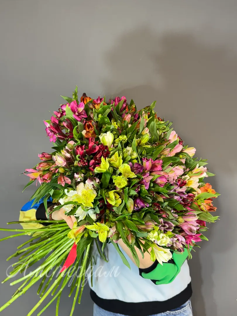 Очаровательный букет из 55 альстромерий станет идеальным подарком для тех, кого вы цените и любите. Каждая цветочная композиция выполнена с вниманием к деталям, что подчеркивает её изысканность и нежность. Лента из атласной ткани добавляет завершенности и элегантности оформлению. Этот букет отлично подойдет для поздравлений, романтических сюрпризов или просто для того, чтобы поднять настроение. Высокое качество цветов гарантирует их свежесть и длительный срок сохранения красоты. Даря этот букет, вы выразите искренние чувства и оставите приятное впечатление. Подарите себе или близким частичку красоты и гармонии с нашим букетом из альстромерий.