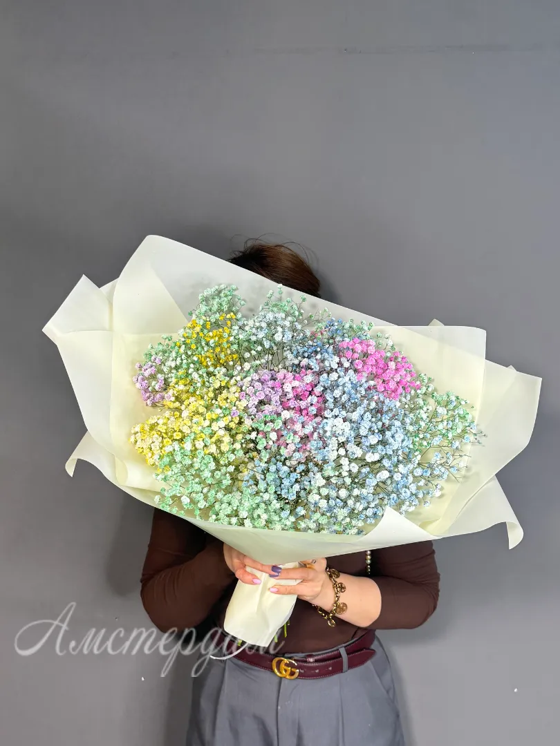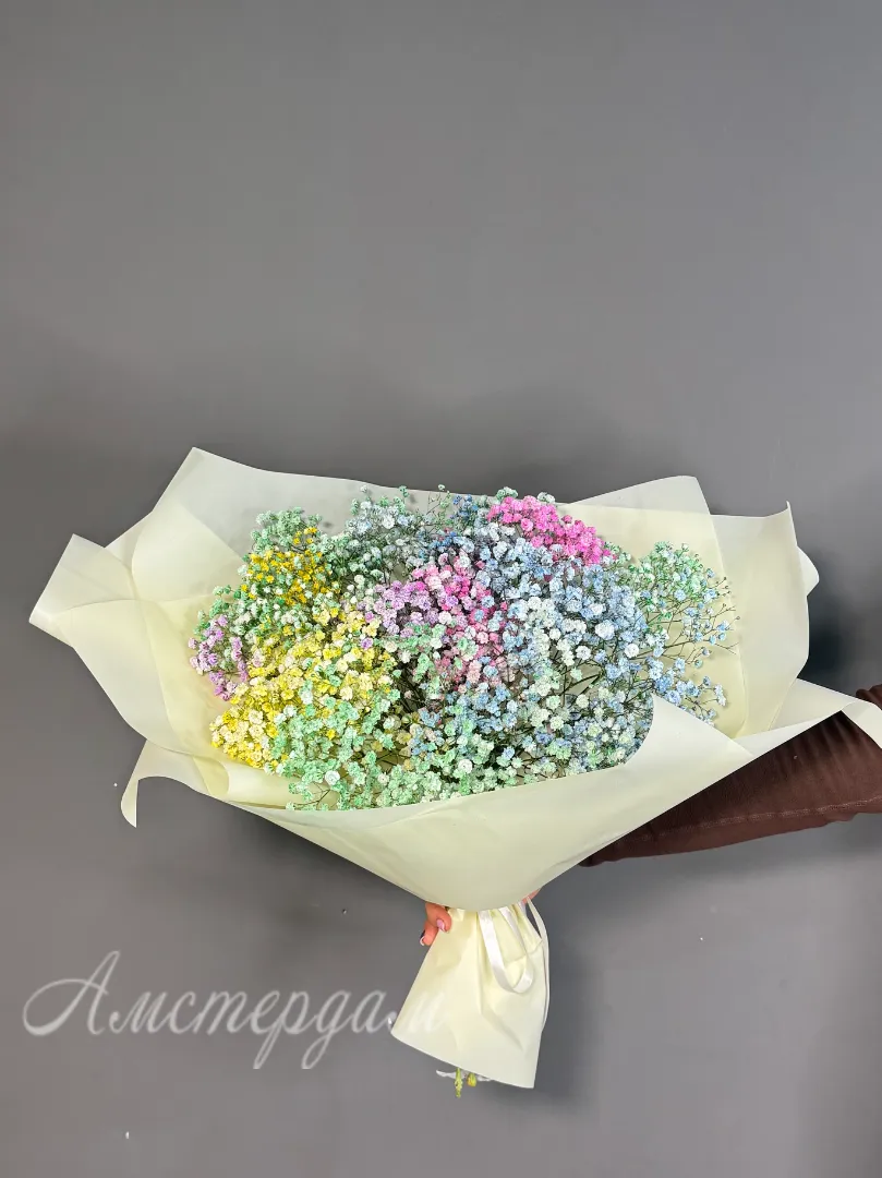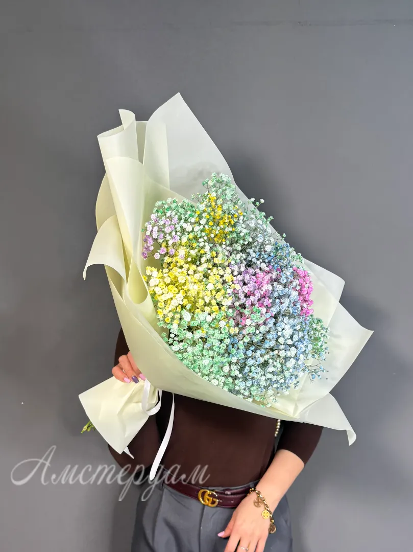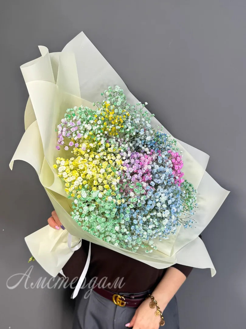Порадуйте ваших близких ярким и необычным подарком — букетом из радужной гипсофилы «Яркий букет». Этот стильный и свежий комплимент отлично подчеркнет ваше внимание и заботу. Каждая веточка оформлена в яркой упаковке, которая сразу привлекает взгляд. Нежные оттенки гипсофилы создают атмосферу радости и тепла. Этот букет идеально подойдет для любого праздника или просто чтобы поднять настроение. Подарите яркие эмоции с нашим эксклюзивным букетом «Яркий букет из радужной гипсофилы».