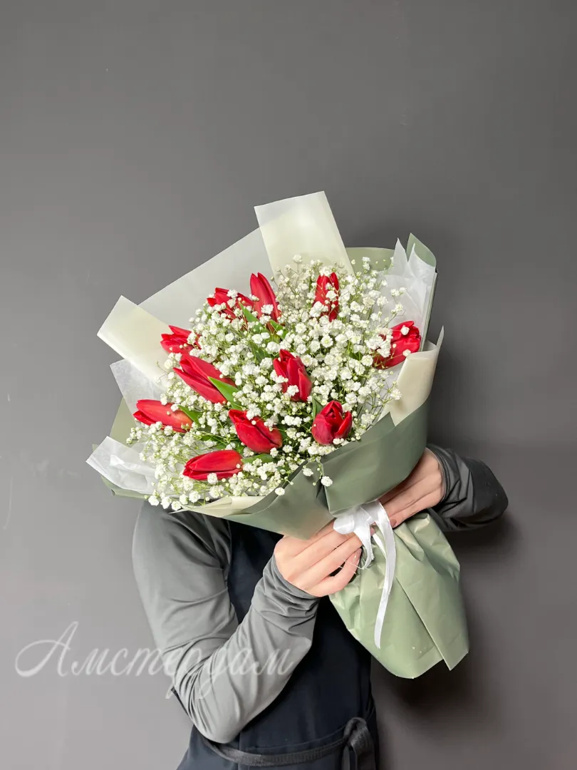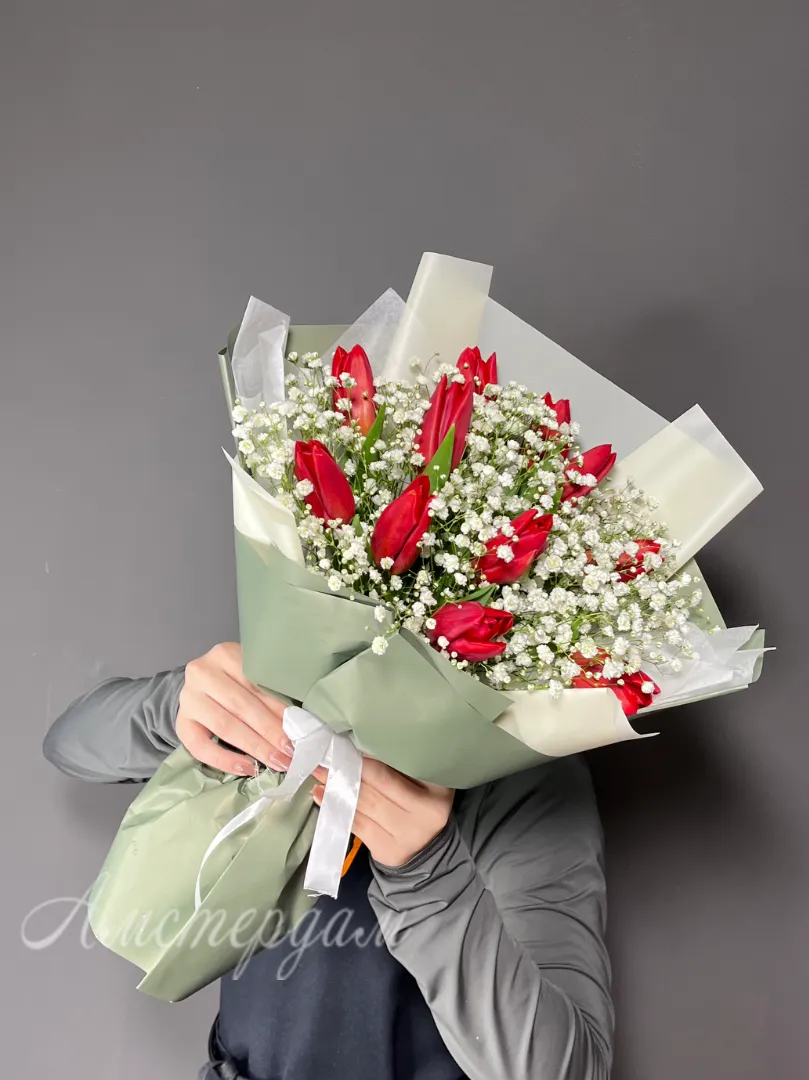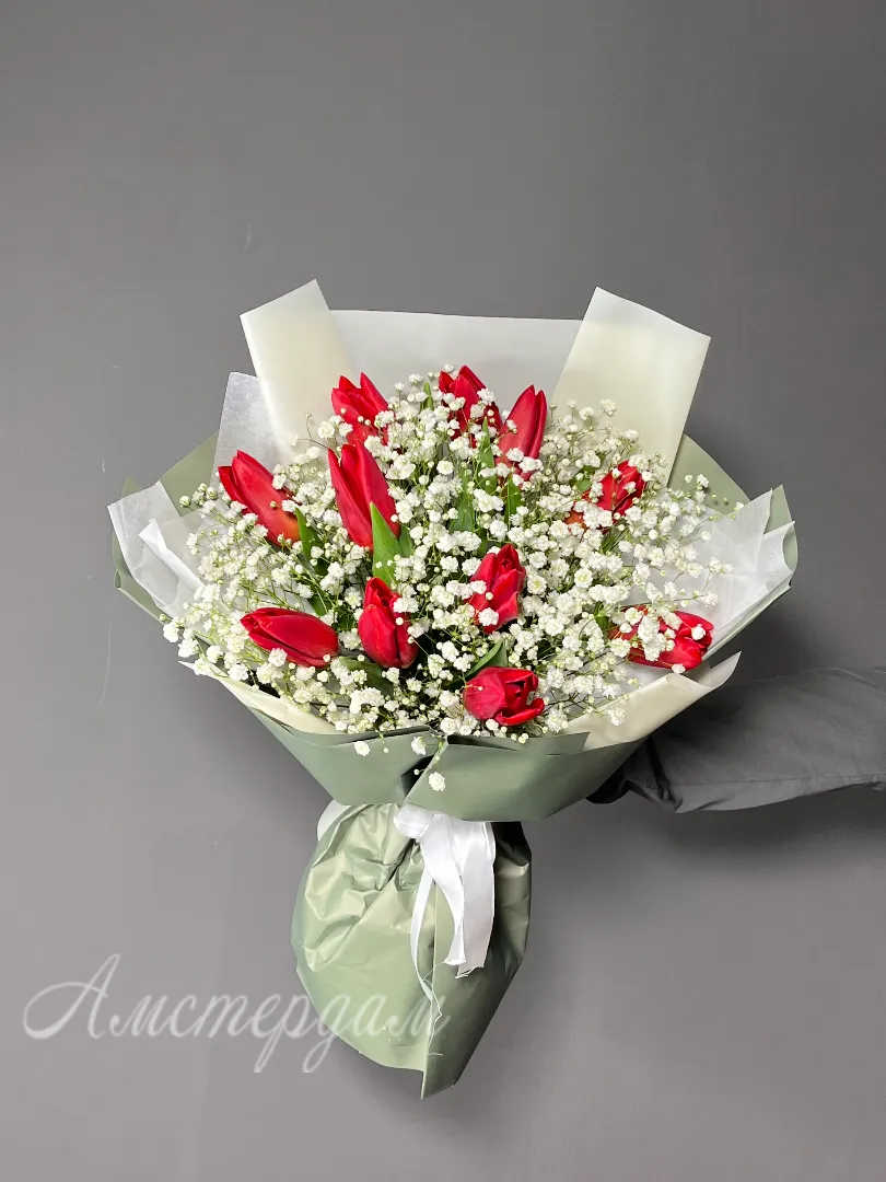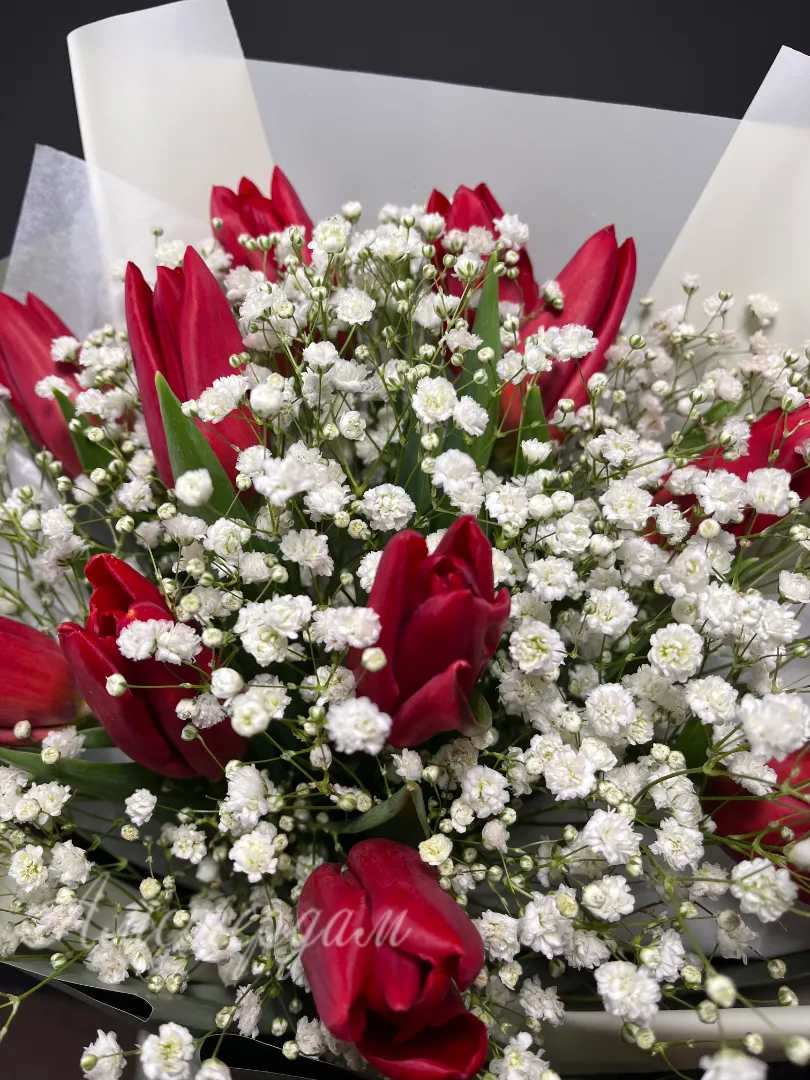 Букет из тюльпан с гипсофилой