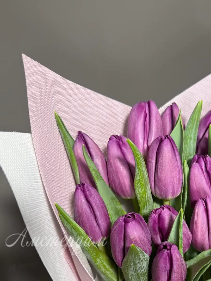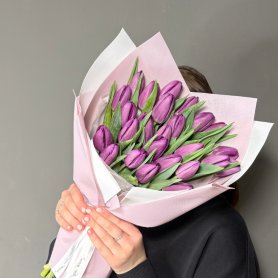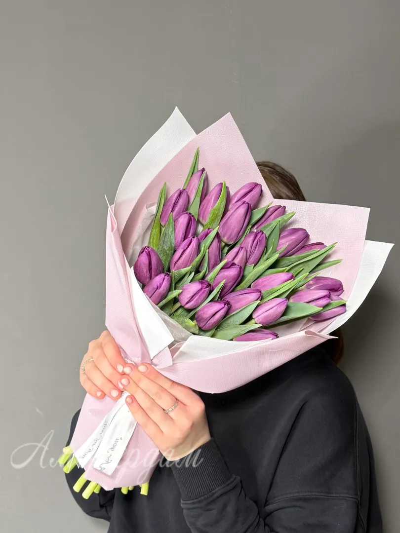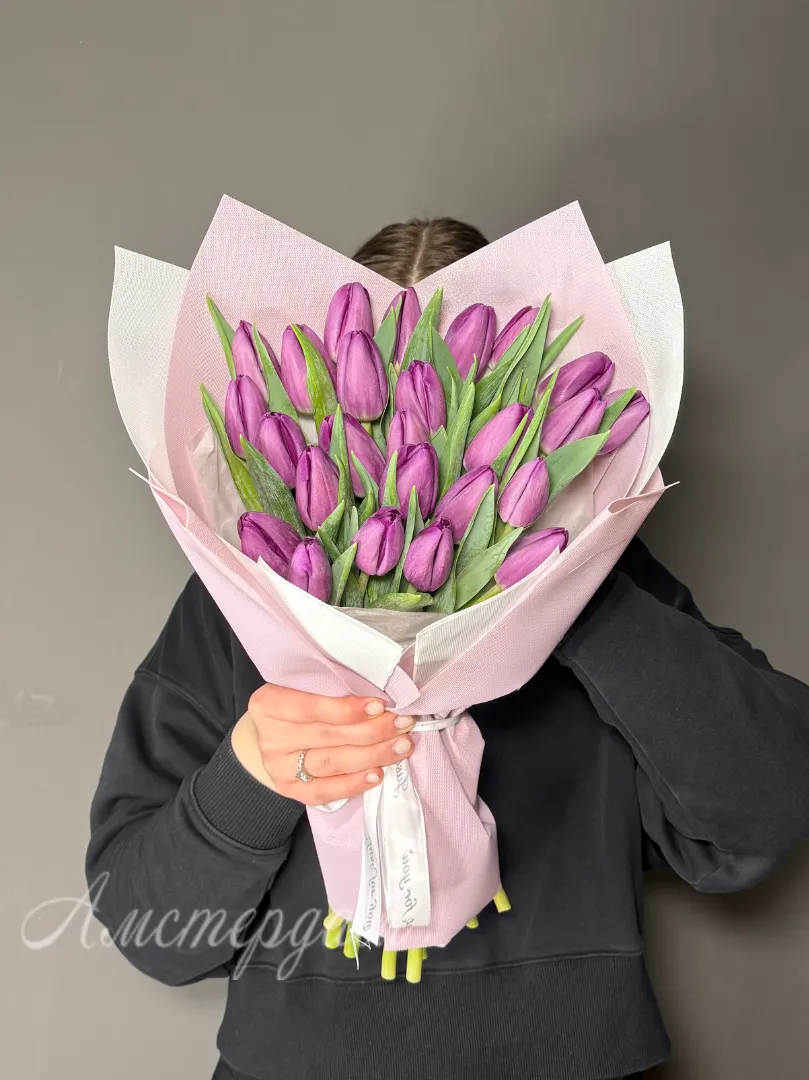 25 сиреневых тюльпанов