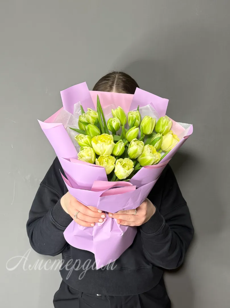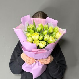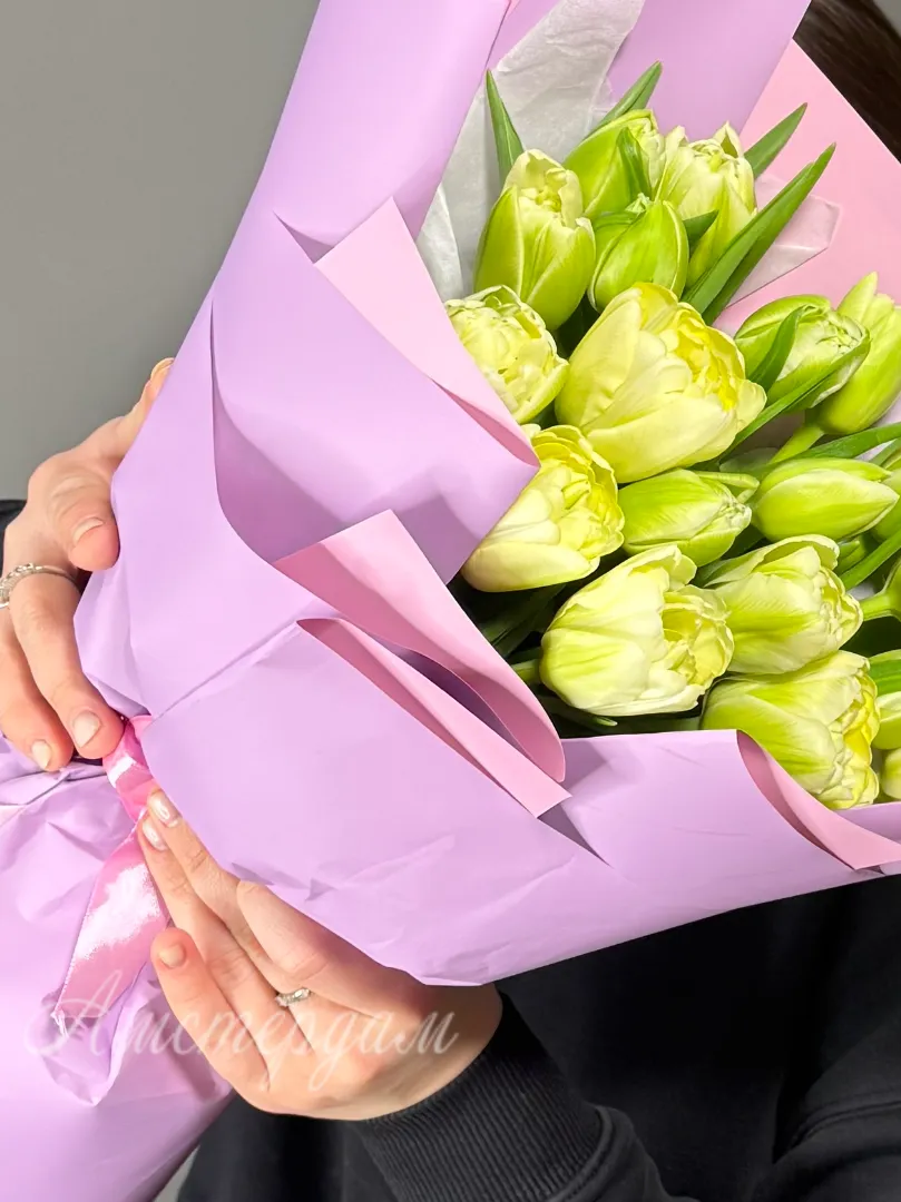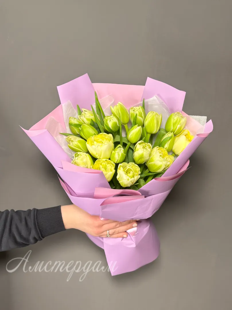 Этот изящный букет состоит из 21 пионовидных тюльпанов, создающих романтичную и праздничную атмосферу. Цветы аккуратно упакованы в стильную дизайнерскую упаковку, которая подчеркнет их красоту и изысканность. Для особого завершения композиции использована атласная лента, придающая букету элегантный вид. Такой букет станет отличным подарком для любого повода и порадует свою обладательницу.