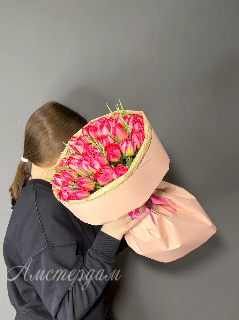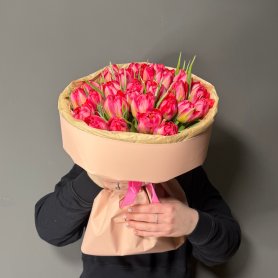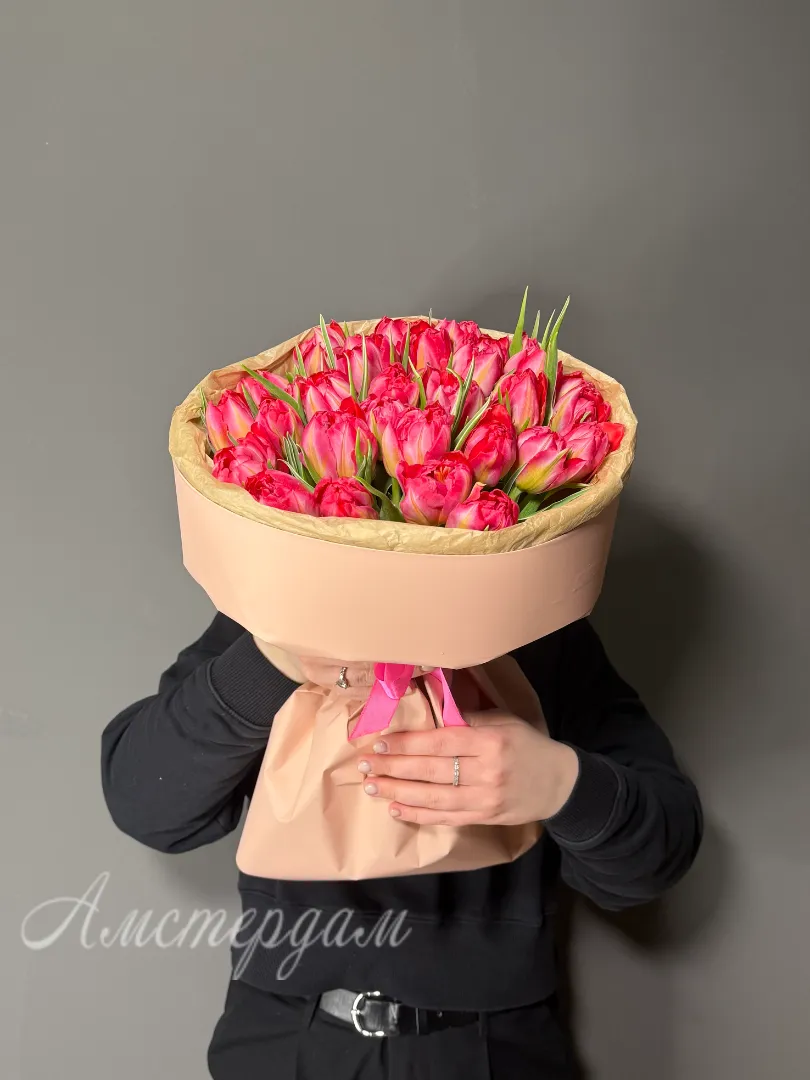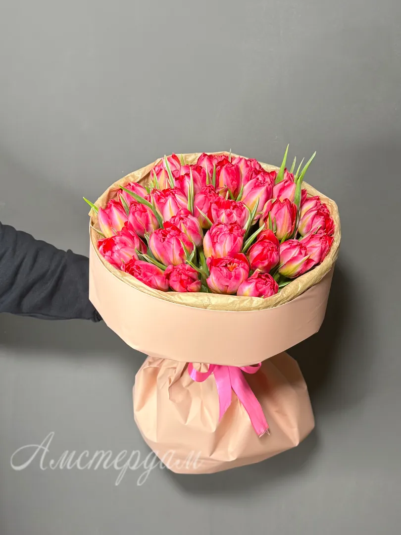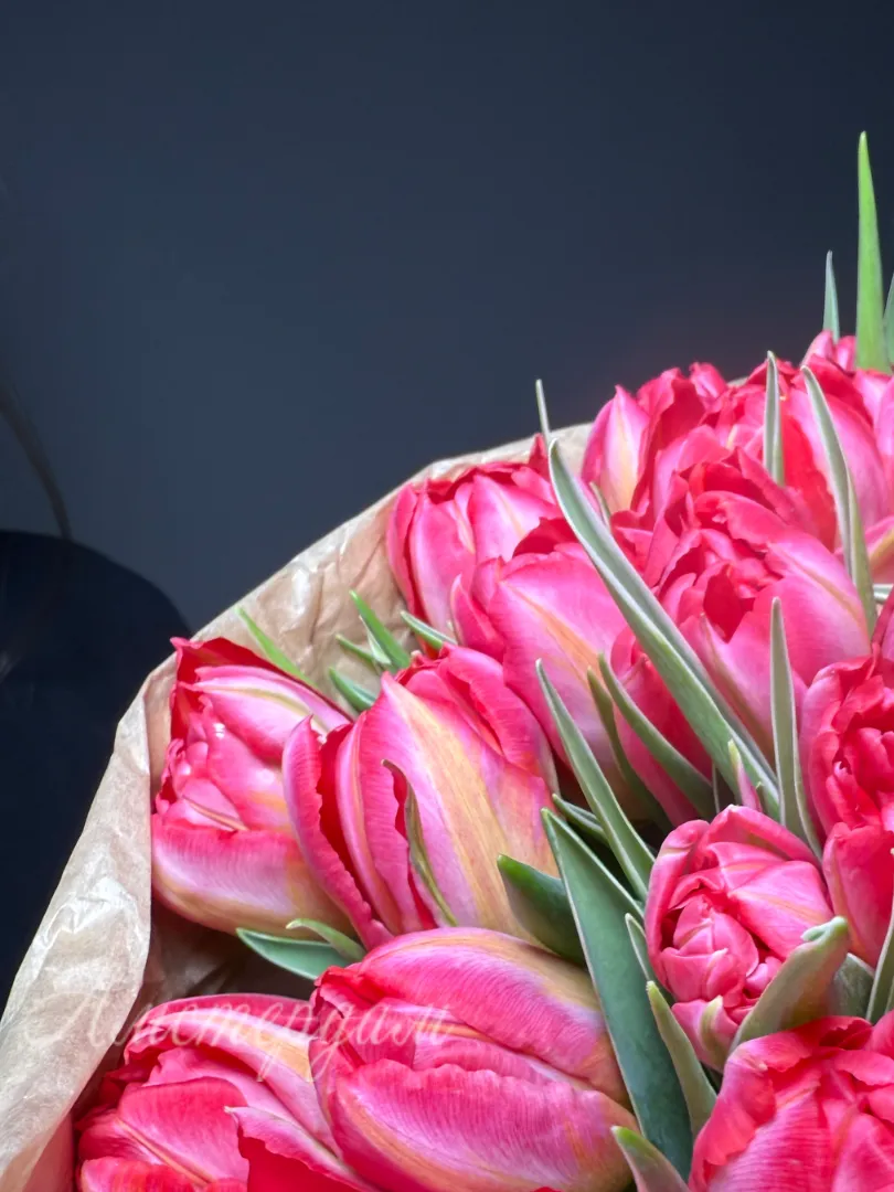Этот букет из пионовидных тюльпанов станет прекрасным подарком для любого повода. Каждая ветка тщательно отобрана и аккуратно расположена для создания гармоничного и изысканного вида. Упаковка выполнена из дизайнерского материала, подчеркивающего особенность и стильность композиции. В завершение, букет украшен атласной лентой, которая придает ему элегантность и завершенность. Пышные пионовидные тюльпаны создают ощущение свежести и весеннего настроения. Такой букет отлично подойдет для поздравлений, романтических жестов или просто чтобы порадовать близкого человека. Он станет ярким акцентом любого интерьера и подарит радость получателю.