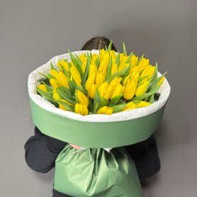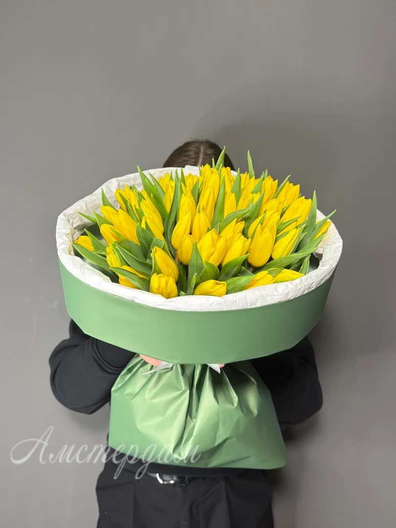 Работаете над созданием яркого и запоминающегося подарка? Наши 51 желтый тюльпан в стильной круглой упаковке — идеальный выбор для любого случая. Натуральные тюльпаны принесут тепло и радость, символизируя счастье и новые начинания. Элегантная дизайнерская упаковка подчеркнет особенность подарка и добавит ему изысканности. Атласная лента придает композиции завершенность и особый шарм. Такой букет отлично подойдет для поздравлений, романтических жестов или выражения благодарности. Яркие желтые цветы и аккуратная упаковка сделают любой праздник незабываемым. Закажите прямо сейчас и подарите яркое настроение и тепло своим близким!
