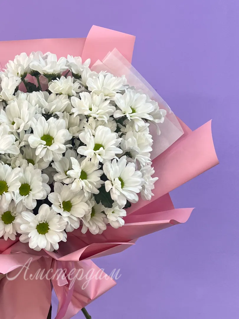 Букет «Английский сад» из хризантем кустовых создает ощущение лёгкости и утонченности. Он идеально сочетает спокойствие и элегантность классического английского сада. Упаковка подчеркивает натуральную красоту и изящество цветов, делая букет завершенным и об эксклюзивным подарком.
