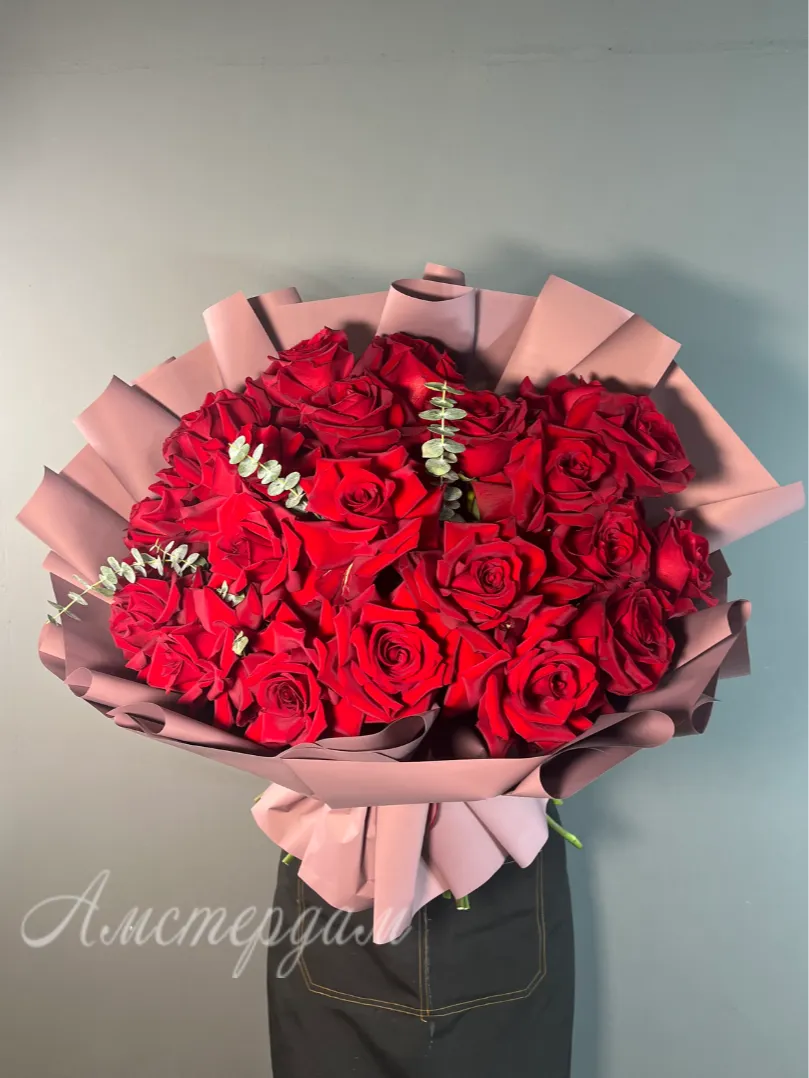 Букет из французских роз «Красный бархат» излучает изысканную элегантность и страсть. В его составе — насыщенные красные французские розы, создающие яркое и романтичное настроение. В сочетании с зеленью эвкалипта букет приобретает свежий и живой вид, добавляя глубину и текстуру. Такой букет подчеркнет важность особого события или станет великолепным подарком. Упаковка тщательно подобрана, чтобы дополнить красоту цветов и придать завершенность композиции. Каждая роза символизирует любовь и страсть, а эвкалипт добавляет нотки свежести и умиротворения. В результате получается гармоничное сочетание ярких и насыщенных оттенков с природной легкостью. Этот букет станет эффектным украшением любого интерьера или памятным подарком для близкого человека.
