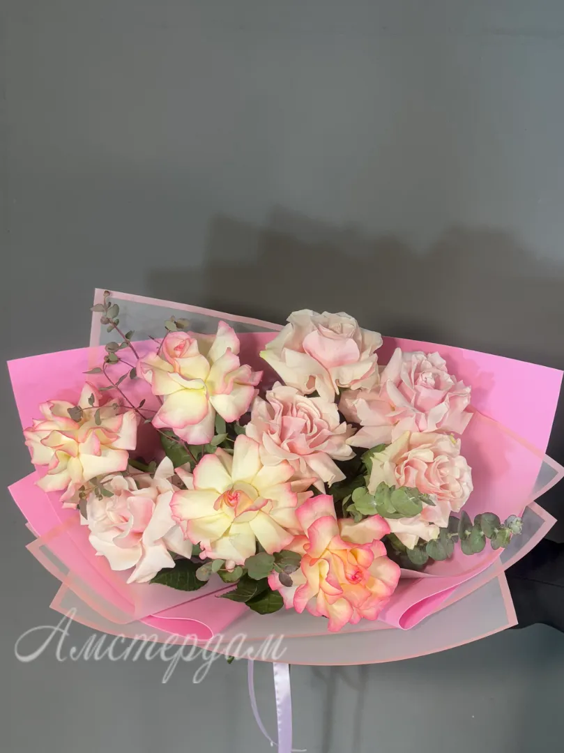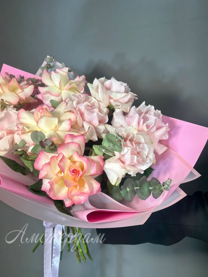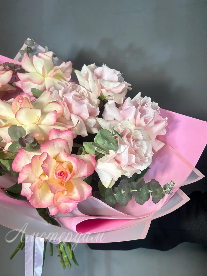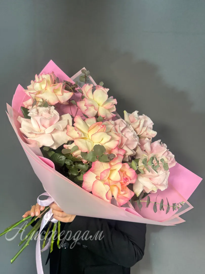 Этот изящный букет из 9 французских роз станет прекрасным подарком на любой повод. Каждая роза привлекает своим насыщенным цветом и изысканным ароматом, создавая атмосферу романтики и тепла. В композицию входит свежий эвкалипт, который добавляет нежную зелень и приятный аромат. Красочная упаковка подчеркивает элегантность цветочной композиции и делает подарок еще более привлекательным. Французская роза символизирует любовь, страсть и изысканность. Букет отлично подходит для выражения искренних чувств и благодарности. Он подготовлен с заботой и вниманием к деталям, чтобы подарить радость и улыбку получателю. Этот букет — гармоничное сочетание красоты и элегантности, которое оставит незабываемое впечатление.