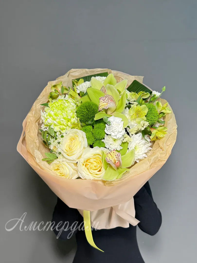 Букет «Экзотика» — это яркое сочетание изысканных цветов и декоративных элементов, таких как атласная лента и упаковка. В его составе присутствуют элегантные орхидеи, розы пионовидные, хризантемы и свежие фисташки, создающие насыщенный и гармоничный образ. Этот букет станет отличным подарком для тех, кто ценит необычную красоту и изобретательное оформление.