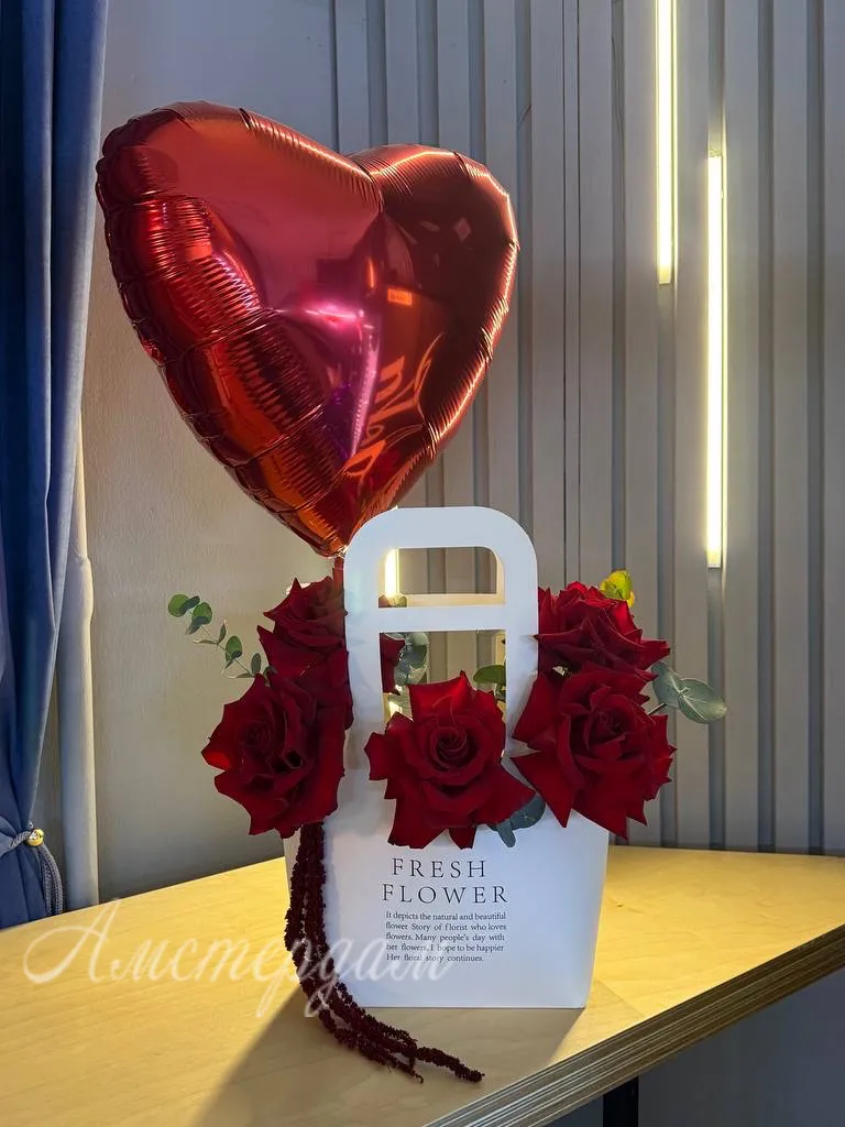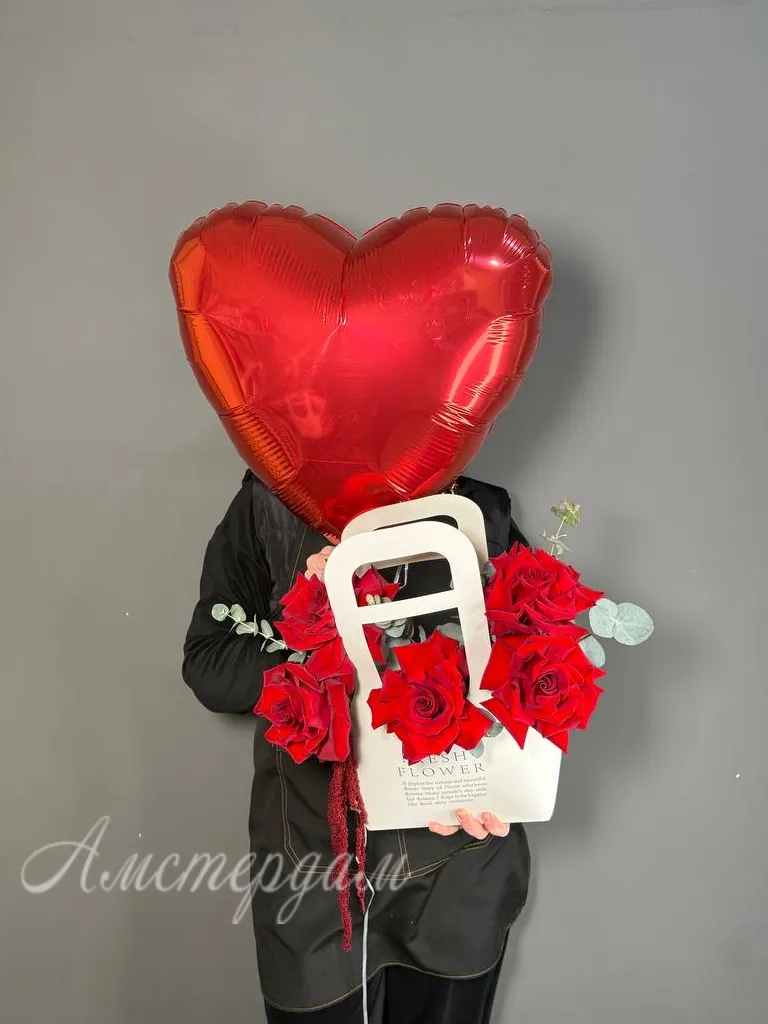 Розы с фольгированным шаром «Признание в любви»