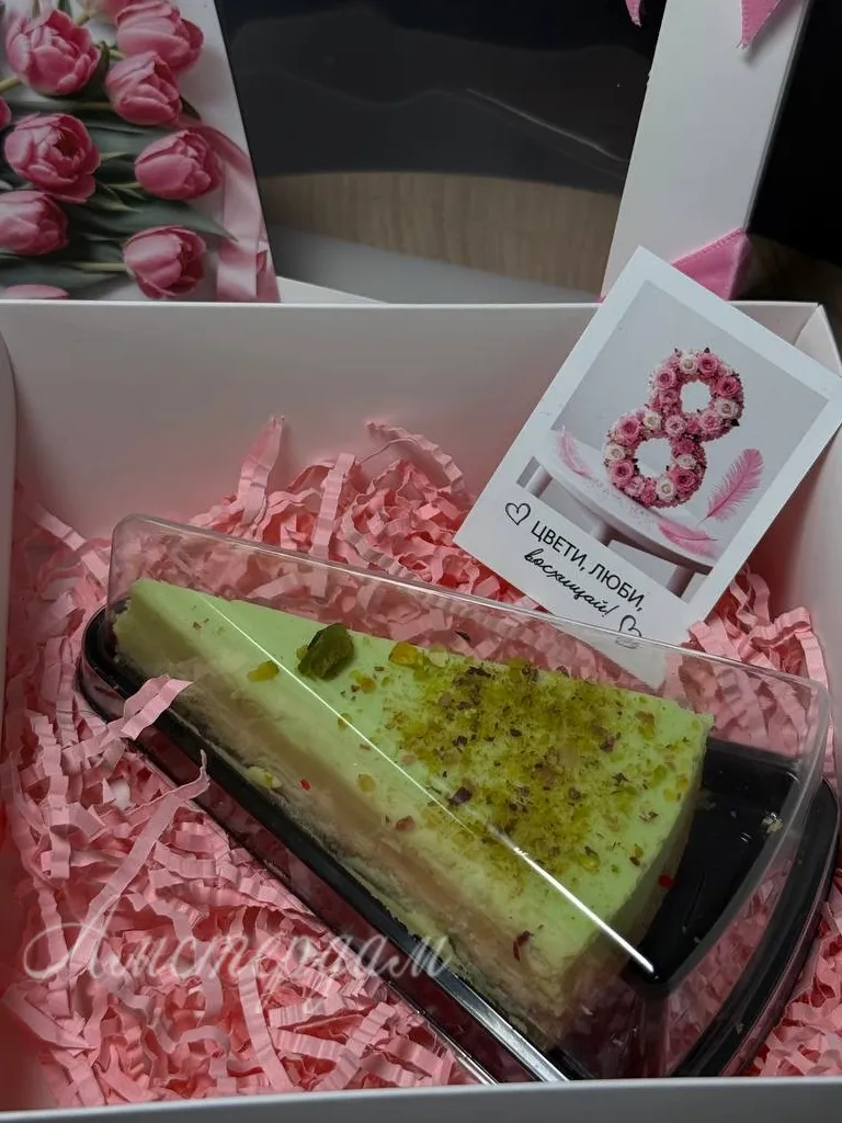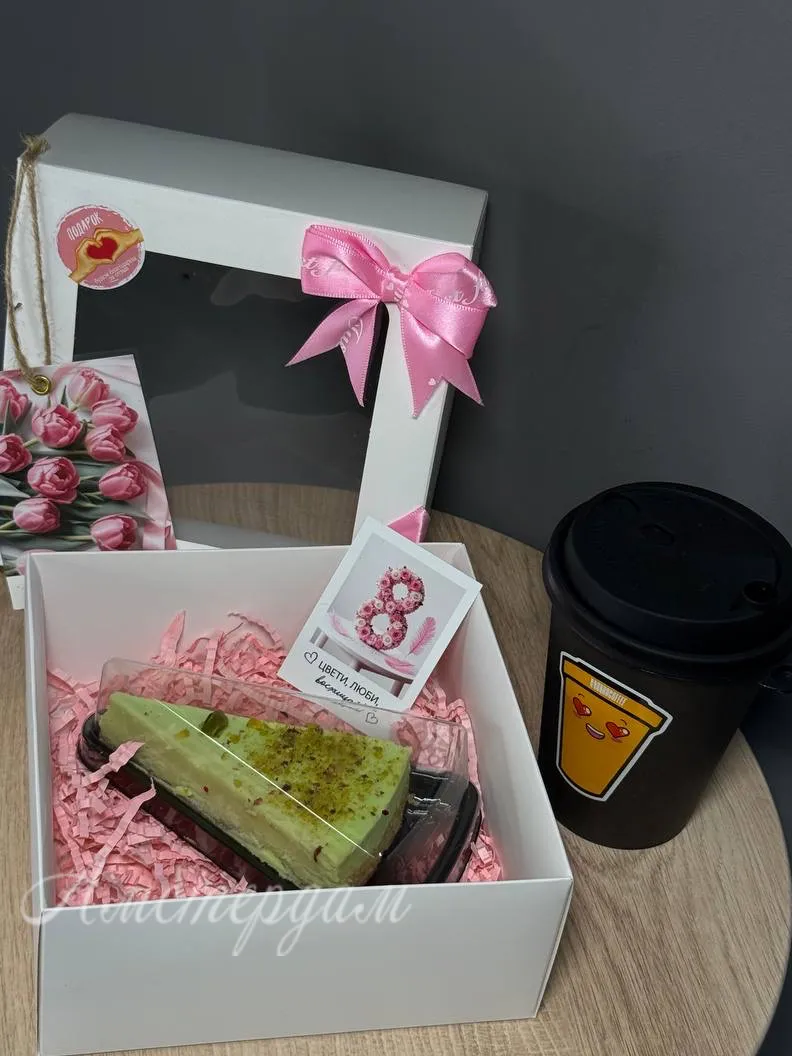 Сладкий набор с кофе и чизкейк Фисташка на 8 марта