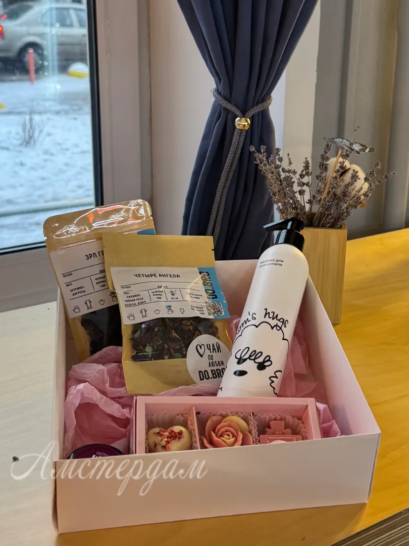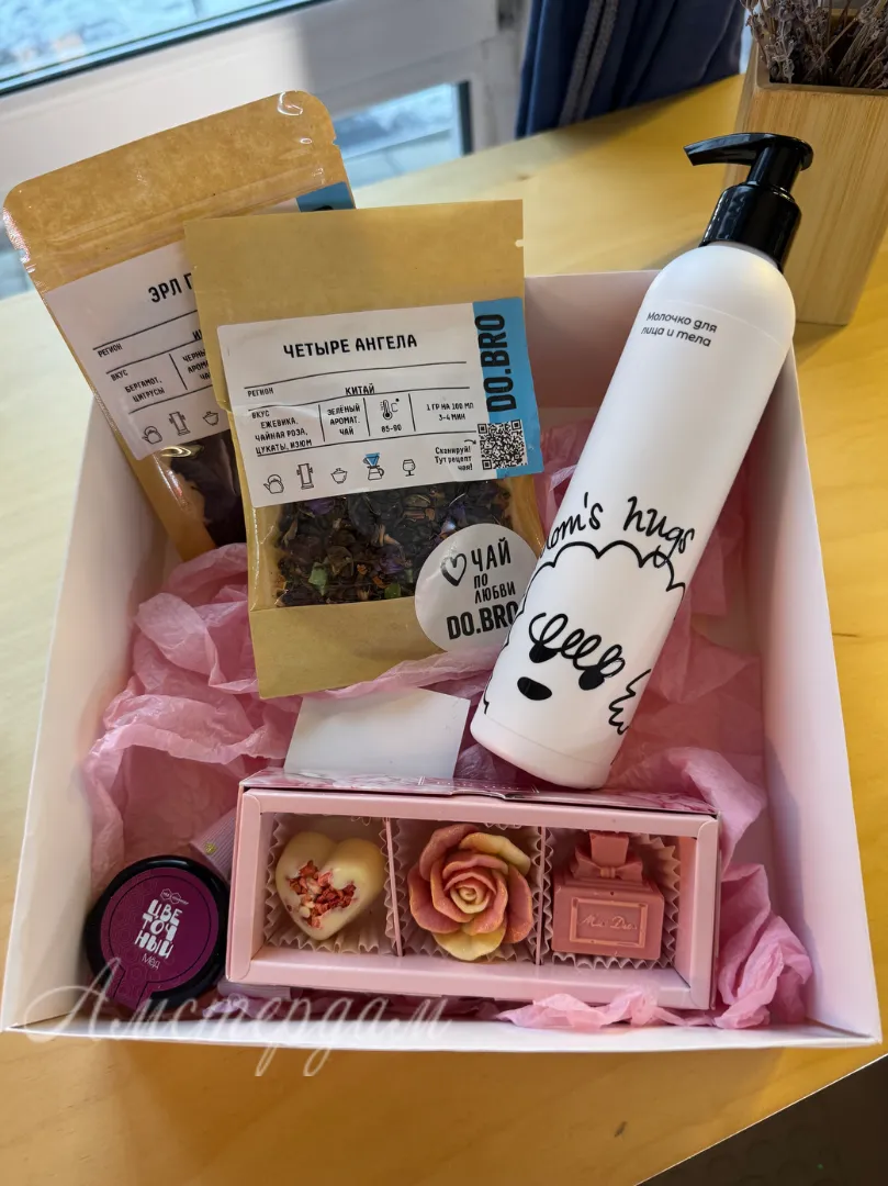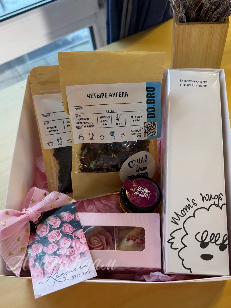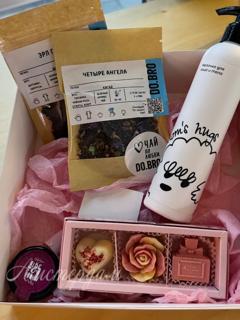 Подарочный набор «Мамины объятия» — это идеально сочетание заботы и удовольствия: мягкое молочко для тела и лица, насыщенный мед, ароматный премиум чай и бельгийский шоколад ручной работы. Этот стильный комплект в изысканной коробке станет прекрасным подарком для тех, кто ценит комфорт и роскошь. Подарите себе или близким моменты уюта и наслаждения с нашим уникальным набором!