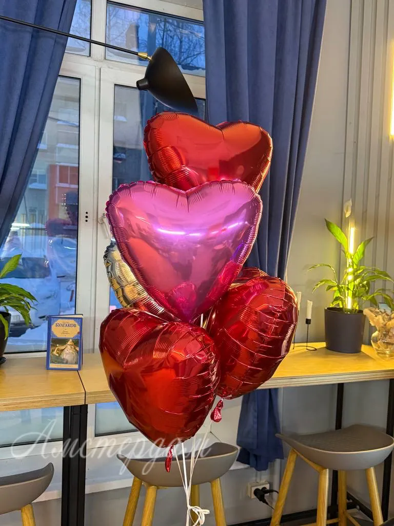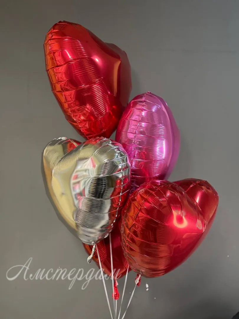 Набор из 5 фольгированных шаров в форме сердце