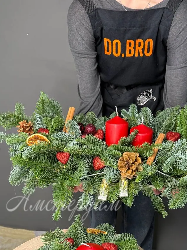 Добавьте уюта и праздничного настроения вашему дому с зимней композицией на стол. Эта изысканная композиция включает яркие новогодние игрушки, которые создадут атмосферу сказки. Основание из искусственного оазиса обеспечивает долговечность и свежесть цветов. В составе также присутствует элегантный Нобилис, добавляющий объема и изящества. Композиция идеально подойдет для украшения праздничного стола или подарка близким. Яркие цвета и праздничный дизайн создадут атмосферу уюта и новогоднего волшебства. Простая установка и долговечность позволяют наслаждаться красотой долгое время. Закажите зимнюю композицию уже сегодня и придайте своему празднику особый очаровательный акцент.