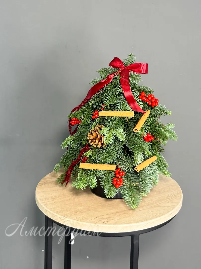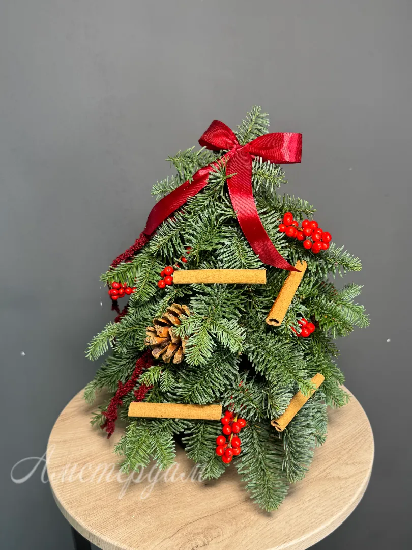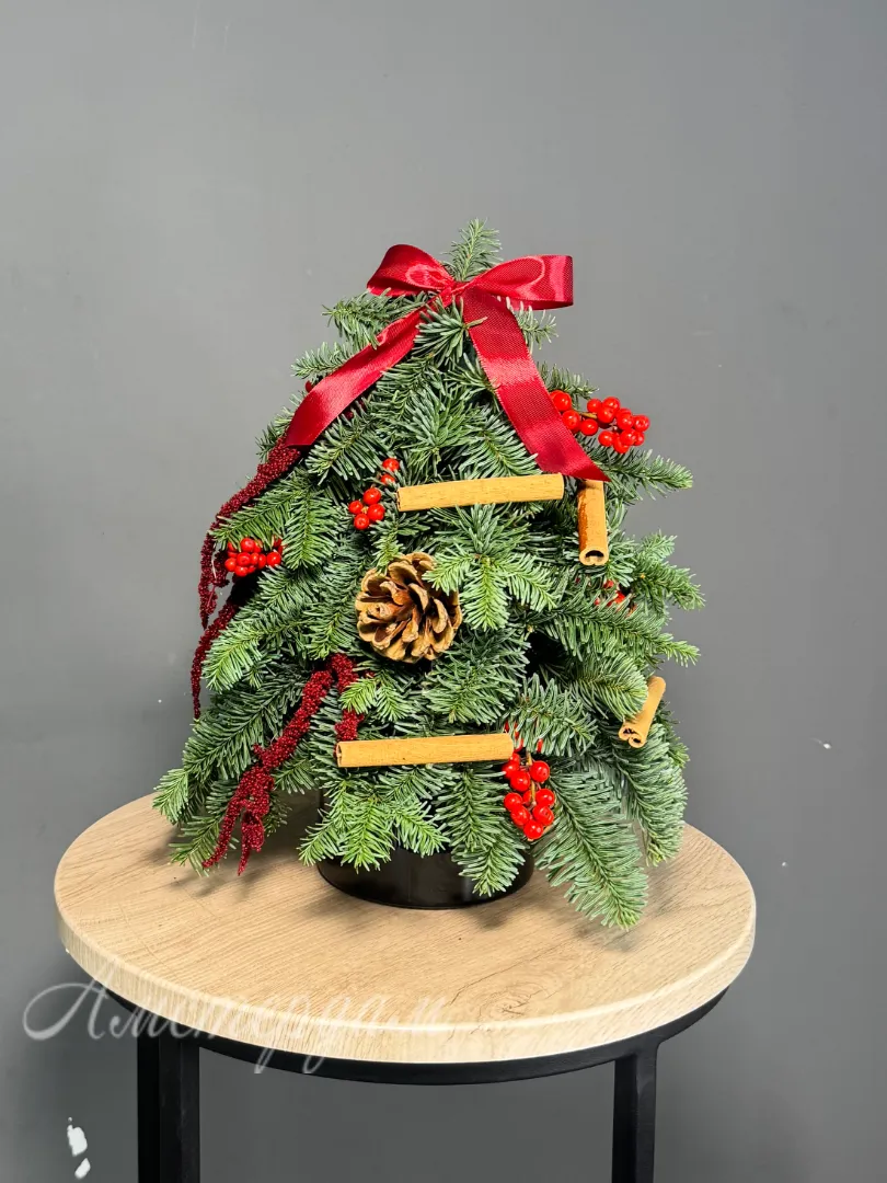 Красивый букет Елка высотой 30 см, украшенный шишками, амарантусом и илексом, идеально подойдет для праздничного декора. В составе используются прочный оазис, яркий амарантус, насыщенный красный илекс и нежный нобилис, создавая гармоничную и уютную атмосферу. Этот оригинальный букет станет отличным подарком или украшением вашего интерьера в праздничный сезон.