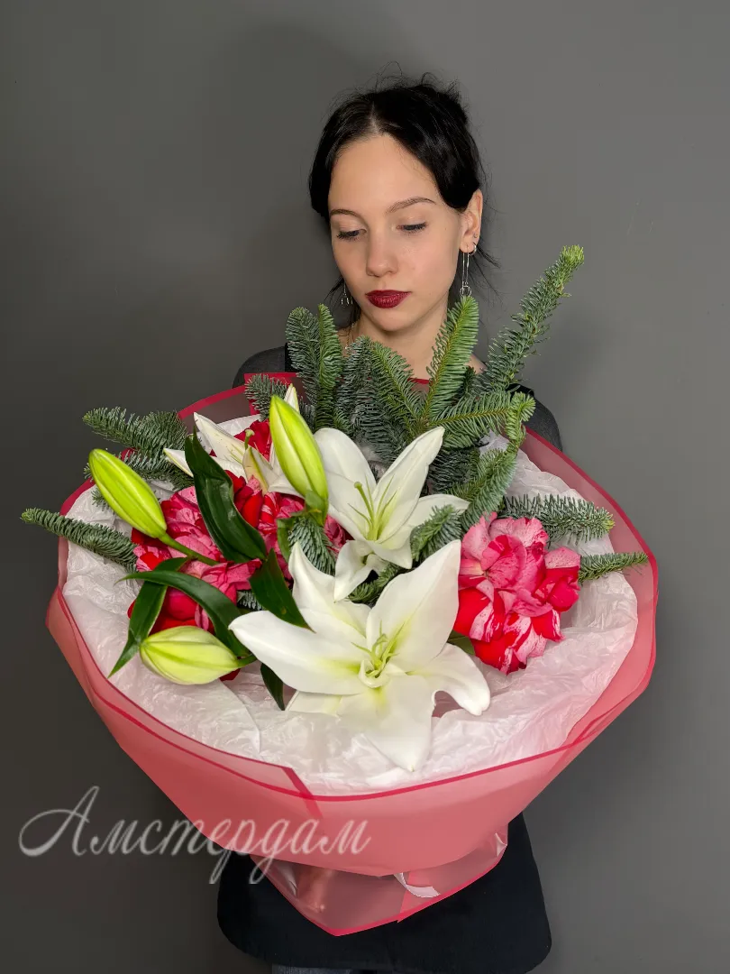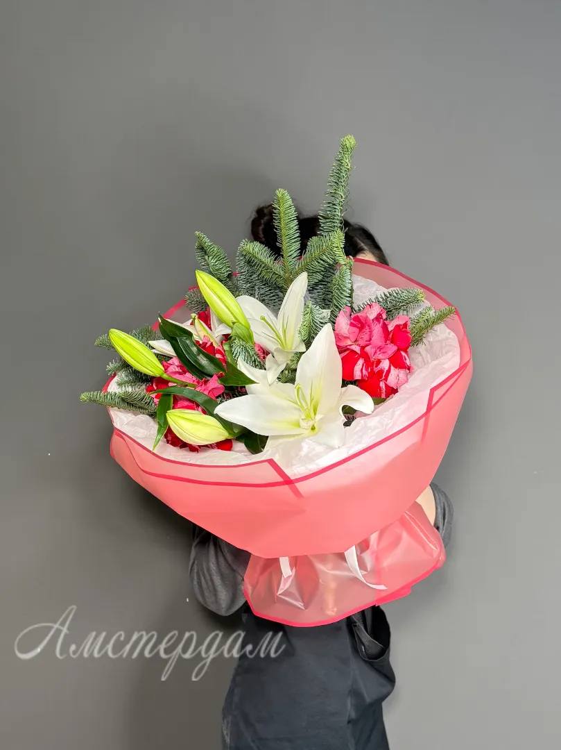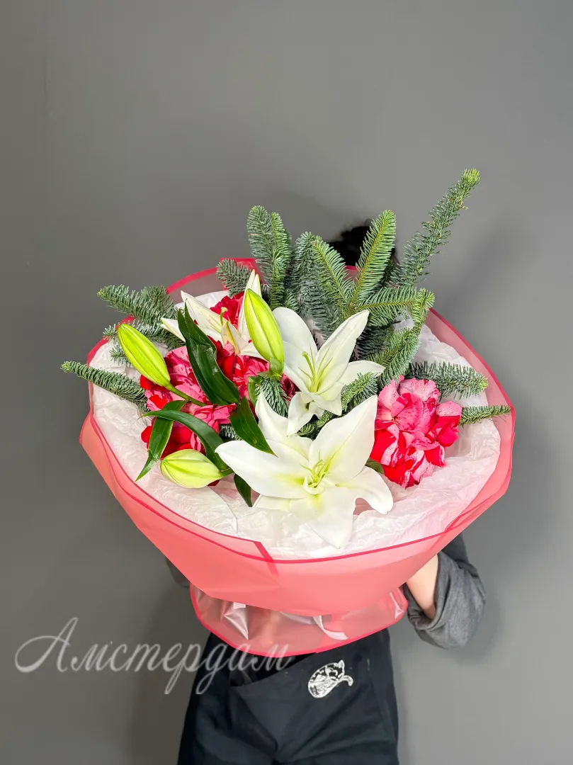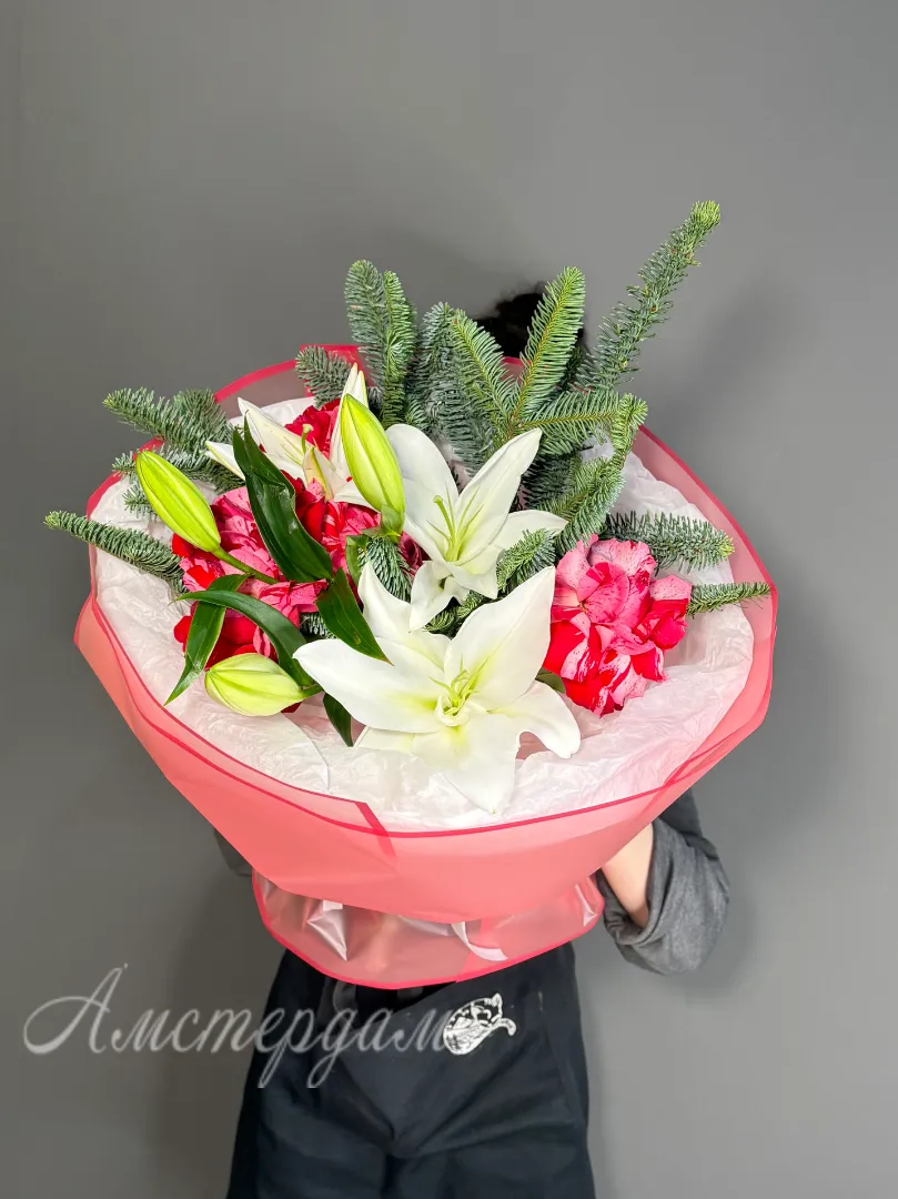 Этот изысканный букет включает в себя нежные французские розы, элегантную лилию и изящный нобилис, создавая гармоничное сочетание цветов. Он приобретает завершенность благодаря стильной упаковке, которая подчеркнет его красоту. Такой букет идеально подойдёт для особых случаев и сможет порадовать ценителей изящества и утонченности. Цветочная композиция выполнена с вниманием к деталям и обладает долгим сроком свежести. Этот букет станет прекрасным подарком для любимых и близких, передавая самые искренние чувства и тепло.