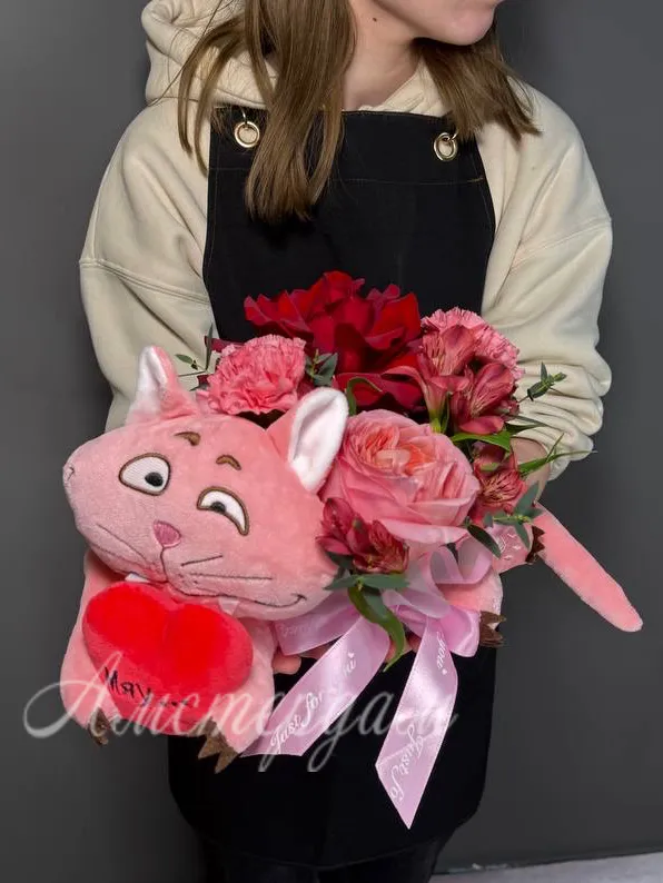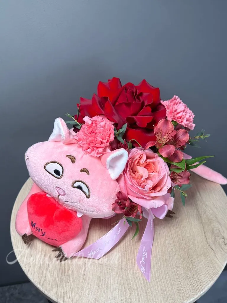 Цветы и котик дарю любовь