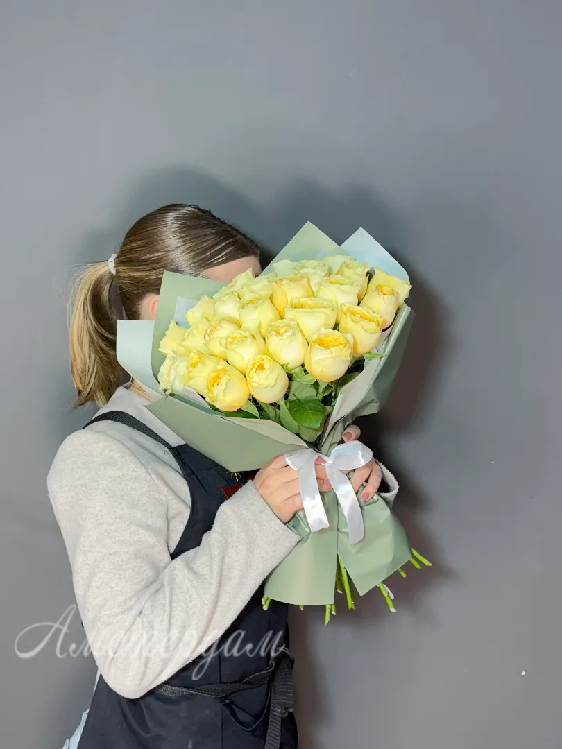 Букеты из 25 лимонных роз